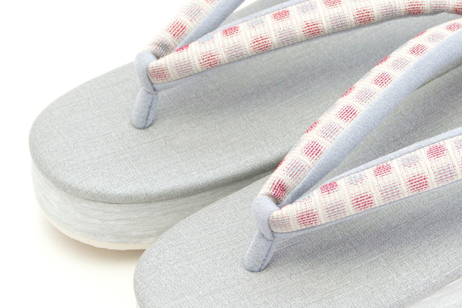[オーダー品]カフェぞうりレディース No.51325 ジュディ<鞠刺繍・赤グレー>