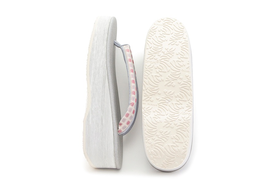 カレンブロッソのEVA台は軽量でクッション性に優れ、滑りにくいという特徴があります。「菱屋」として創業以来培った技術をそのままに、従来の草履 [コルク芯+革底]を[EVA台+ゴム底]に改良。アスファルト舗装やコンクリート舗装など現代の生活環境でも歩きやすいよう実用性をプラスしました。