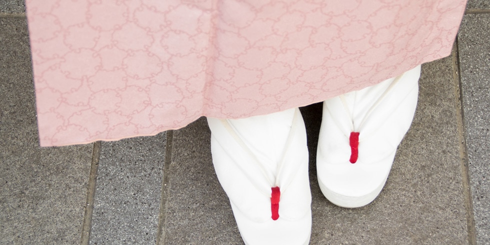 また、お出かけされる場所(正装が必要な場所)によっては、会場にてコルク芯草履へ履き替えられるなど、周りの方に合わせて履物を使い分けて頂くことをお薦め致します。