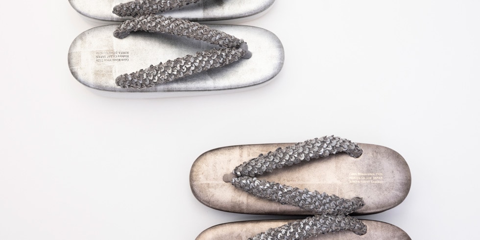 1915京都烏丸で創業。京鹿の子絞りの名店、片山文三郎商店製箔麟絞りテキスタイルで鼻緒に誂えました。