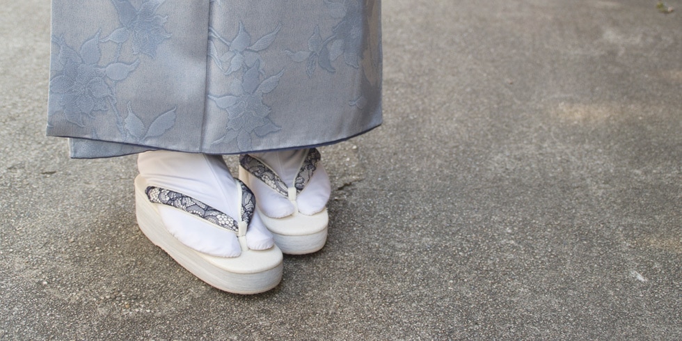 柔らかな風合いと色合いが特徴的で繊細なレース生地を加工の技術と工夫により鼻緒に仕立てました。