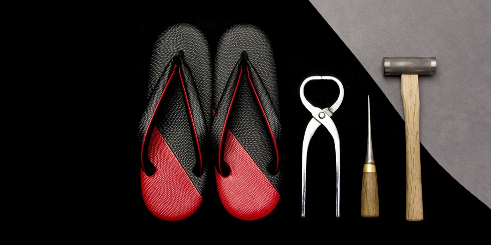 EVA台の特徴である歩きやすさやクッション性、見た目のデザインはそのままに、コルク芯草履と同様に「すげ替え」機能が生まれました。