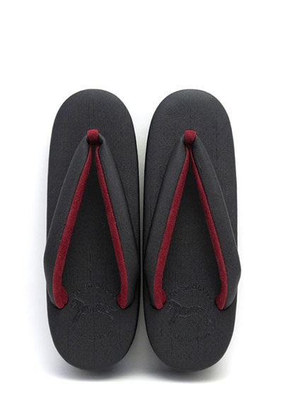 カレンブロッソのEVA台は軽量でクッション性に優れ、滑りにくいという特徴があります。「菱屋」として創業以来培った技術をそのままに、従来の草履 [コルク芯+革底]を[EVA台+ゴム底]に改良。アスファルト舗装やコンクリート舗装など現代の生活環境でも歩きやすいよう実用性をプラスしました。