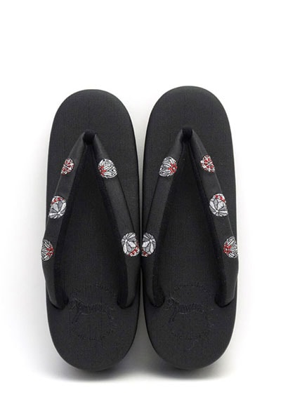 [オーダー品]カフェぞうりレディース No.51325 ジュディ<鞠刺繍・赤グレー>