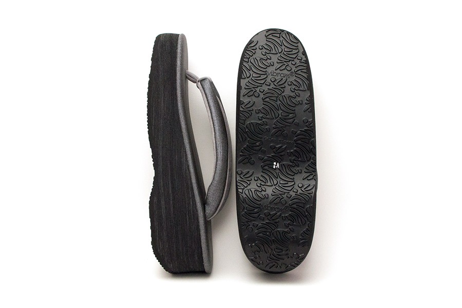 カレンブロッソのEVA台は軽量でクッション性に優れ、滑りにくいという特徴があります。「菱屋」として創業以来培った技術をそのままに、従来の草履 [コルク芯+革底]を[EVA台+ゴム底]に改良。アスファルト舗装やコンクリート舗装など現代の生活環境でも歩きやすいよう実用性をプラスしました。