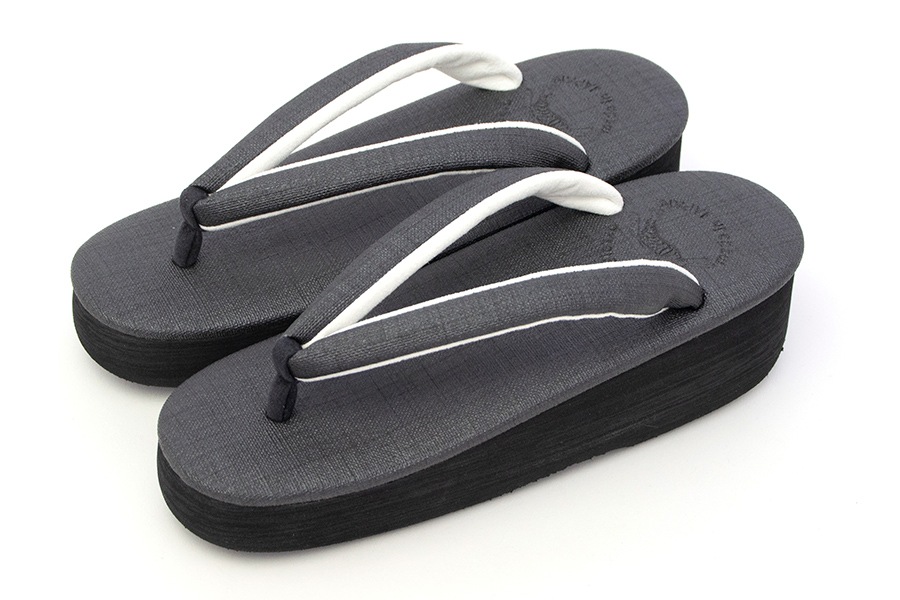 カレンブロッソのEVA台は軽量でクッション性に優れ、滑りにくいという特徴があります。「菱屋」として創業以来培った技術をそのままに、従来の草履 [コルク芯+革底]を[EVA台+ゴム底]に改良。アスファルト舗装やコンクリート舗装など現代の生活環境でも歩きやすいよう実用性をプラスしました。