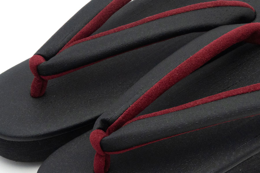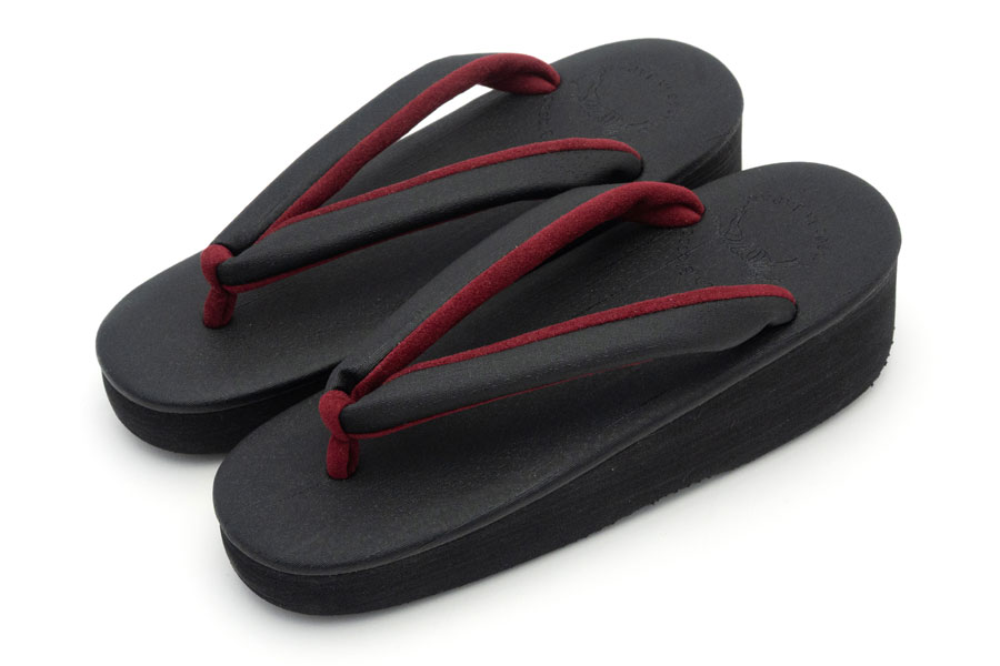 カレンブロッソのEVA台は軽量でクッション性に優れ、滑りにくいという特徴があります。「菱屋」として創業以来培った技術をそのままに、従来の草履 [コルク芯+革底]を[EVA台+ゴム底]に改良。アスファルト舗装やコンクリート舗装など現代の生活環境でも歩きやすいよう実用性をプラスしました。