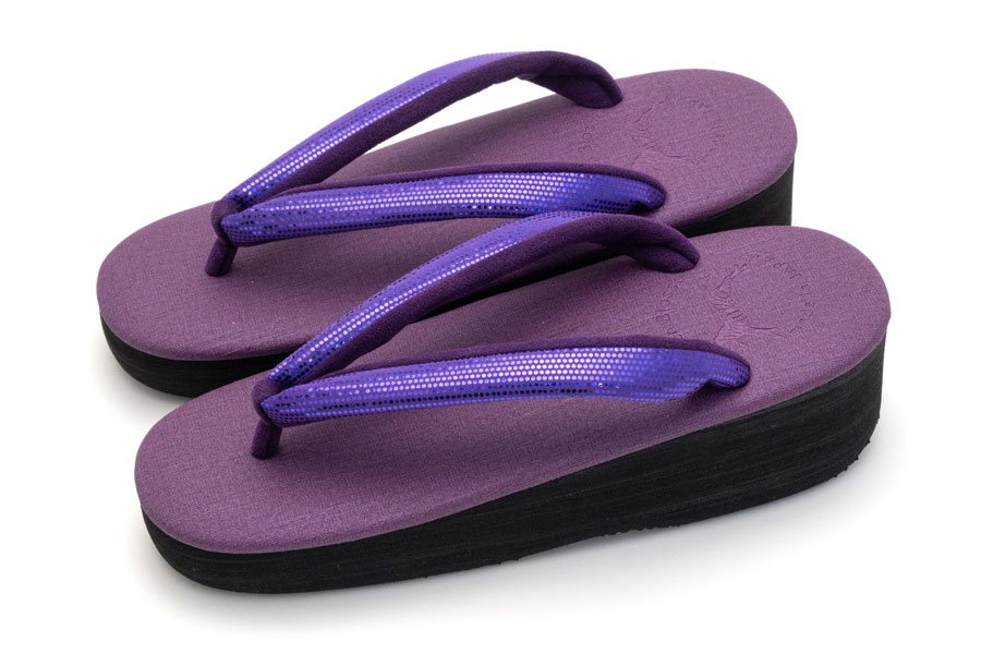 カレンブロッソのEVA台は軽量でクッション性に優れ、滑りにくいという特徴があります。「菱屋」として創業以来培った技術をそのままに、従来の草履 [コルク芯+革底]を[EVA台+ゴム底]に改良。アスファルト舗装やコンクリート舗装など現代の生活環境でも歩きやすいよう実用性をプラスしました。