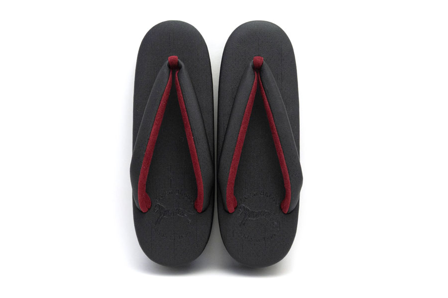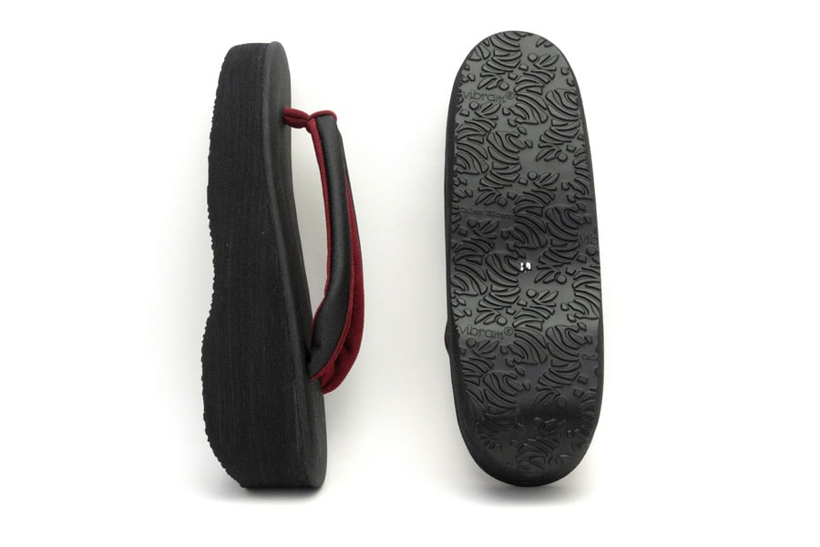 カレンブロッソのEVA台は軽量でクッション性に優れ、滑りにくいという特徴があります。「菱屋」として創業以来培った技術をそのままに、従来の草履 [コルク芯+革底]を[EVA台+ゴム底]に改良。アスファルト舗装やコンクリート舗装など現代の生活環境でも歩きやすいよう実用性をプラスしました。